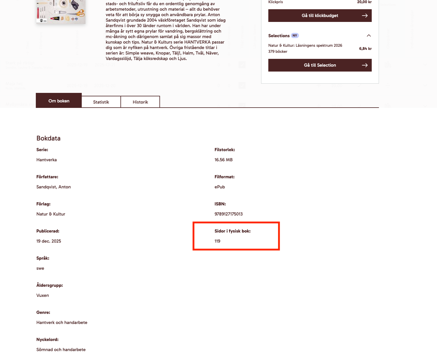 Det går nu att se sidantalet i den fysiska boken under bokens detaljer.